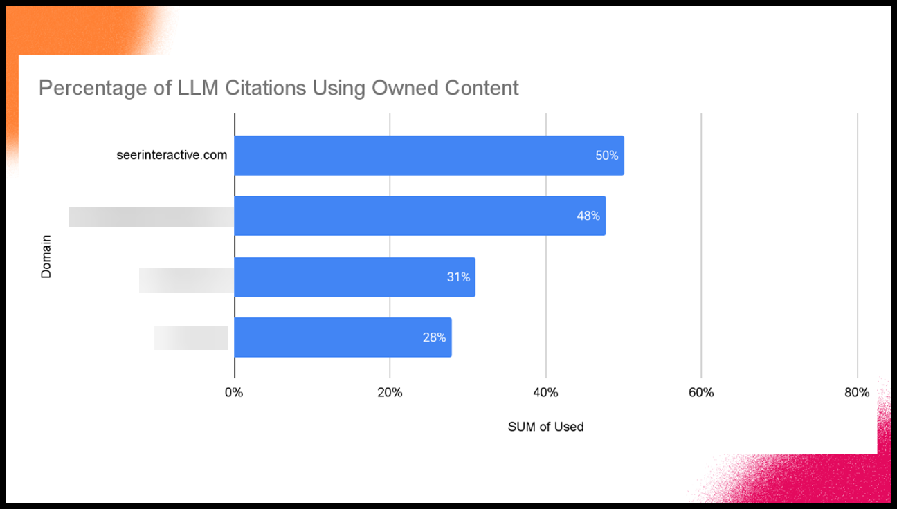 We run the prompt... "Tell me about Seer Interactive" but we also run it for 3 other competitors.  As you can see we drive more of our own citations than our competitors do.