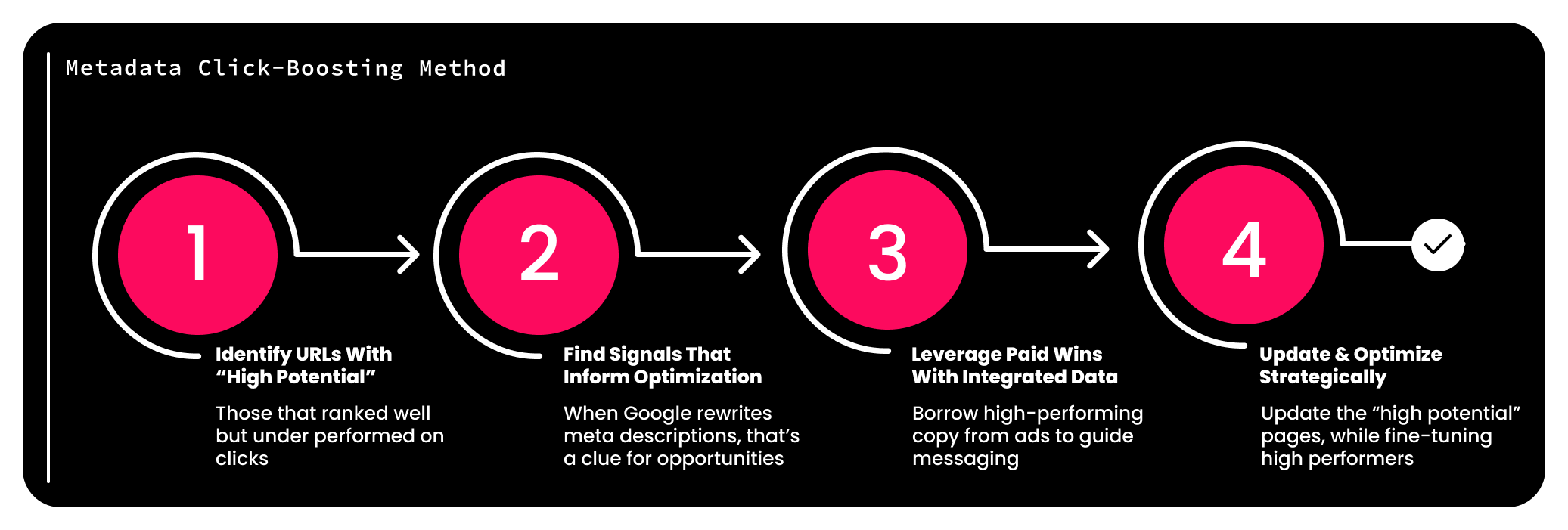 We focused on doing more with what already existed. Strategically increase visibility and engagement on high-priority site pages by improving metadata